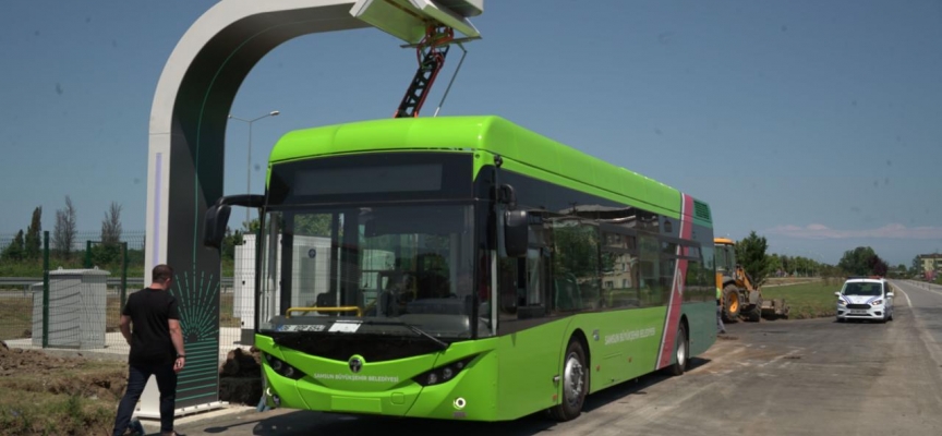 Kentte hizmet verecek 20 elektrikli otobüsten 10'u getirilerek Tekkeköy-Havalimanı güzergahında test edilmeye başlandı.