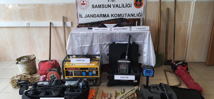 Samsun'da Jandarma Komutanlığı ekipleri, Alaçam ilçesinde define bulmak amacıyla kazı yapıldığı bilgisi üzerine çalışma yürüttü.