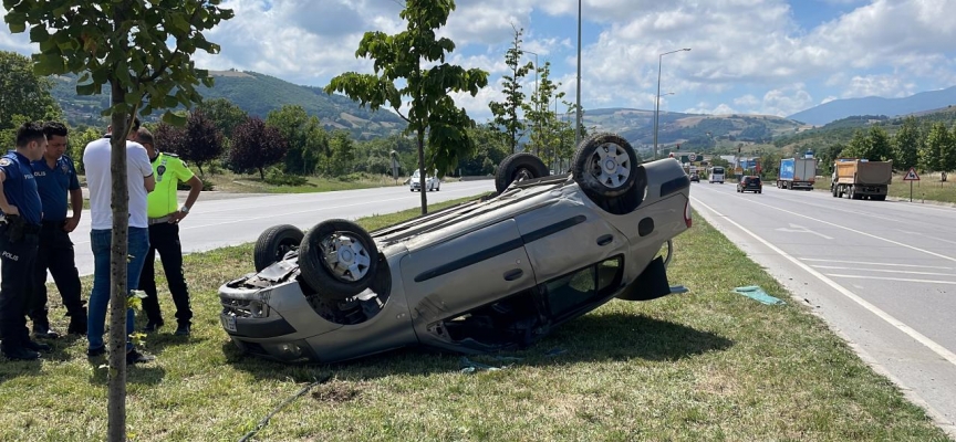 Emekli polis memuru Kanber Erdoğan'ın (53) kullandığı 55 AL 166 plakalı otomobil, Samsun-Ankara kara yolu Toybelen mevkisinde refüje devrildi.