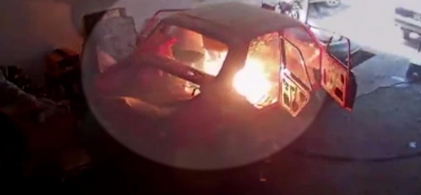 Bu arada, oksijen tüpünün alev alması iş yerinin güvenlik kamerasınca kaydedildi.