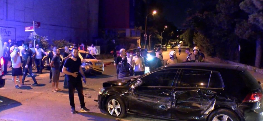 Cadde üzerinde hız yaptığı iddia edilen 34 EEP 557 plakalı otomobil, sürücüsünün kontrolünden çıkarak önce 2 otomobile sonrasında ise hafif ticari araç ile taksiye çarptı.