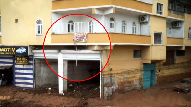 Şanlıurfa’nın Eyyübiye ilçesindeki Kondu Caddesi’nde bulunan binanın zemin katını iş yeri sahibi Yusuf Balkan'ın içinde bulunduğu sırada sel bastı.
