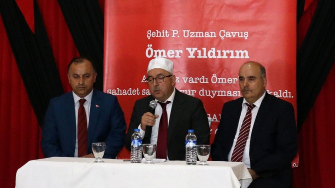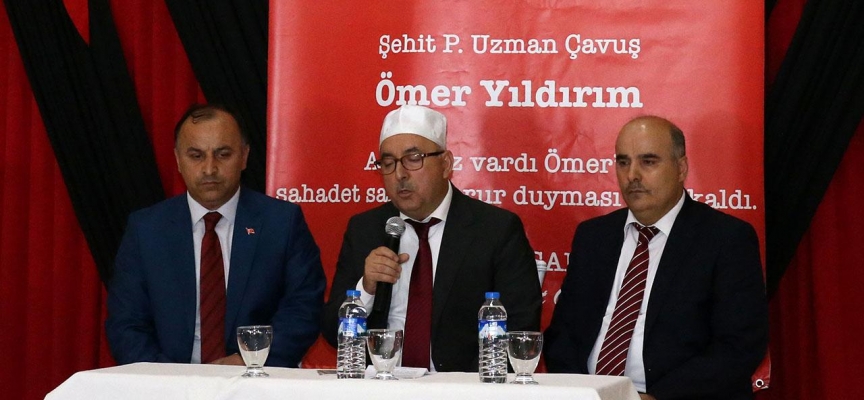Şehidin fotoğrafının ve "Ahdimiz vardı Ömer'im, şehadet sana, gurur duyması bize kaldı. Ruhun şad, mekanın cennet olsun." yazısının asıldığı salonda, Ömer Yıldırım'ın video ve fotoğraflarından oluşan slayt gösterildi.