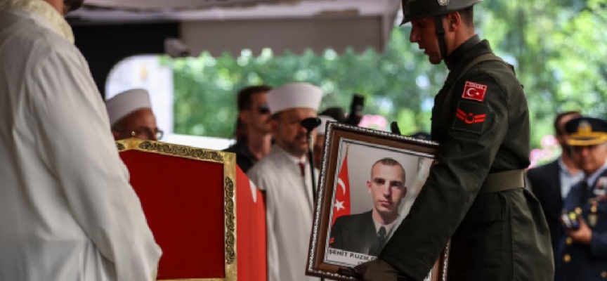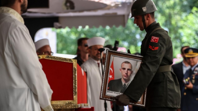 Şehit Piyade Uzman Çavuş Enes Özgül için Ataköy 5. Kısım Ömer Duruk Camisi'nde cenaze töreni düzenlendi. Şehidin camiye getirilen Türk bayrağına sarılı tabutunun önüne fotoğrafı konuldu.