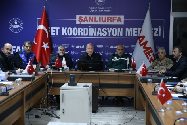 İçişleri Bakanı Süleyman Soylu, Hazine ve Maliye Bakanı Nureddin Nebati ve Tarım ve Orman Bakanı Vahit Kirişci ile selin etkili olduğu Şanlıurfa Afet Koordinasyon Merkezi'nde gazetecilere açıklamalarda bulundu.