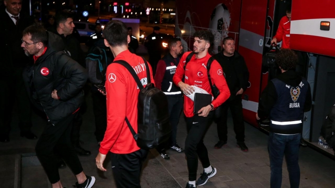 Ermenistan'dan uçakla Bursa Yenişehir Havalimanı'na gelen A Milli Futbol Takımı, daha sonra otobüsle konaklama yapacağı Nilüfer ilçesindeki otele geçti.