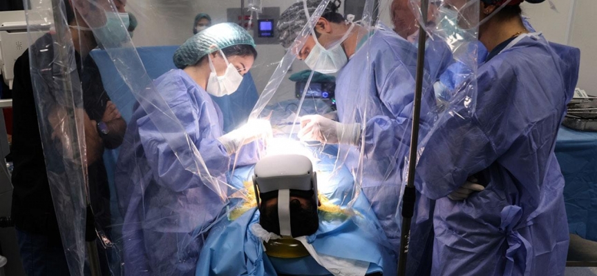 Hastalar ameliyatta sanal gerçeklik gözlüğüyle film izliyor