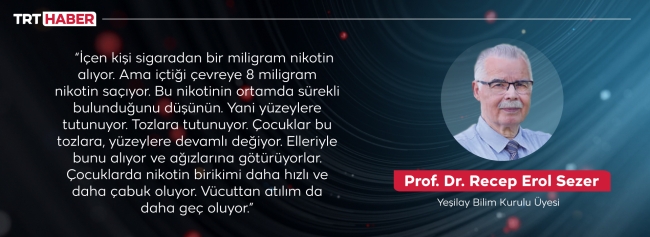 “Çocuklar evlerde emekliyorlar, zemine dokunuyorlar, o evlerde yaşıyorlar. Örneğin; sigara içilen bir evde herkes içmeyi bıraktıktan bir hafta sonra taze yastık kılıfları yerleştirilmiş ve yastık kılıflarında biriken nikotin üç hafta boyunca izlenmiş. Sıfır yastık kılıfı, nikotin yok. Buna rağmen kılıfların üç hafta içerisinde önemli bir nikotin birikimi sağladığı görülüyor. Demek ki bu nereden geliyor? Ev içinde birikmiş, yayılmış, saçılmış olan nikotin ortama çıkıyor. Ortamdaki maddelere gidiyor. Çocuklar bunlara maruz kalacak. Demek ki çocukları kanserden korumanın ya da hastalıktan korumanın önemli yollarından birisi evleri sigarasızlaştırmak.”