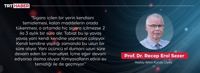 “Dumanda bulunan maddeler, ortamda bulunan yüzeylerdeki maddelere sinebiliyor. Sindikleri gibi tutunabiliyor. Tutundukları ve sindikleri yerlerde ya da havada bir süre asılı kalabiliyorlar” diyor Prof. Dr. Recep Erol Sezer. Sözlerine şöyle devam ediyor: