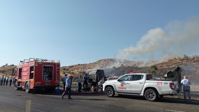 Bölgede yangın nedeniyle ulaşım bir süre tek şeritten kontrollü sağlandı.