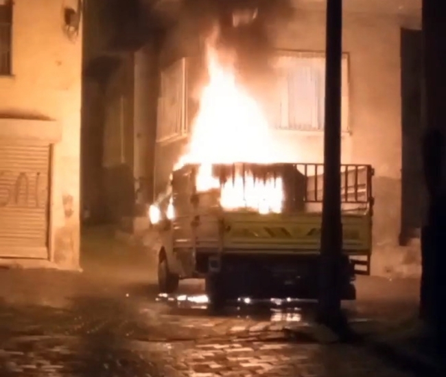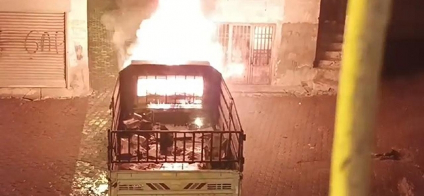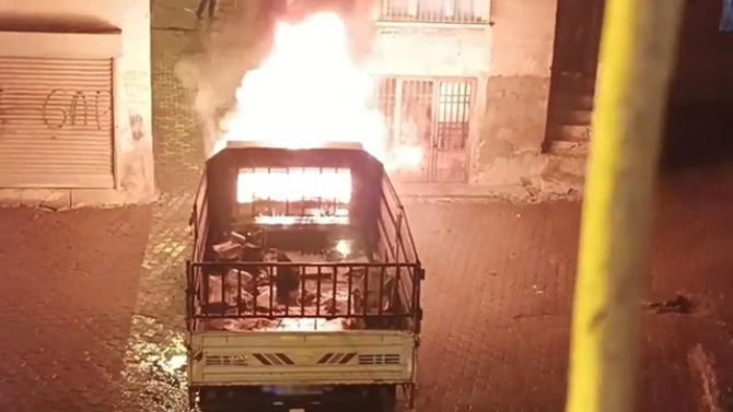 Yangın, saat 00.30 sıralarında Sakarya Mahallesi 503. Sokak'ta park halinde bulunan kamyonette meydana geldi.