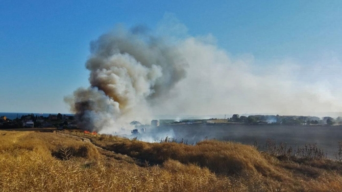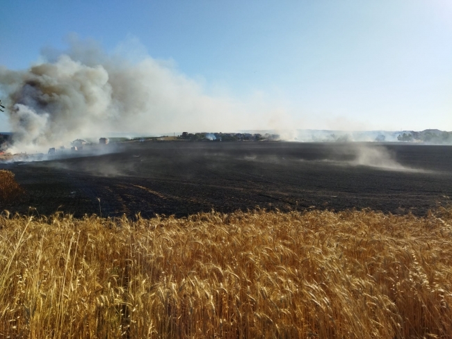 Yaklaşık 150 dönümlük buğday tarlası bir anda yanmaya başladı. Alevler kısa sürede bütün tarlayı sardı.