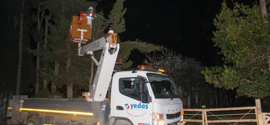 YEDAŞ ekipleri, kısa sürede duruma müdahale ederek tellere zarar veren ağacın dalını kesti, ardından yeniden bağlantı sağlayarak sorunu giderdi.