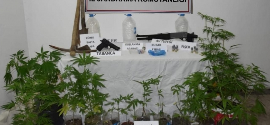 Sinop İl Jandarma Komutanlığı tarafından Boyabat ilçesinde yasadışı kenevir ekimi yaptığı tespit edilen şüpheli 2 şahsa yönelik yapılan operasyonda, 23 kök kenevir bitkisi ele geçirildi.