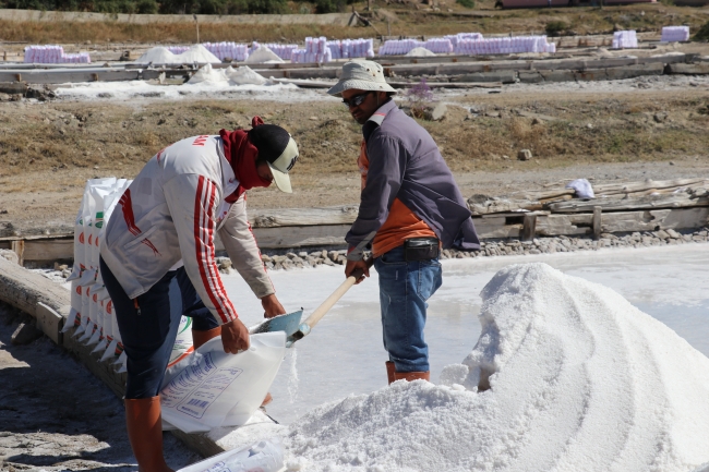 Yılmaz, başka bir kaynaktan elde ettikleri tuzun da özel olduğunu dile getirerek, "Bu 84 mineral 2 element dediğimiz özel bir tuz, vücutta sindirilebilen bir tuzdan bahsediyorum. Tuzlarımızda herhangi bir katkı yok. Herhangi bir yapay üretim söz konusu değil. Tamamen doğal üretmeyi tercih ediyoruz. Toplanan tuzlarımız çuvallara, oradan da paketlere konuluyor. Başka hiçbir işlem görmüyor." diye konuştu.