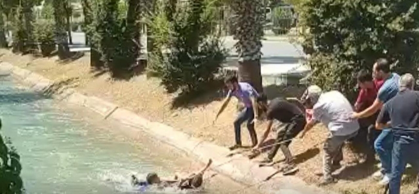 Çevredekilerin de yardımıyla kanaldan çıkarılan çocuk annesine teslim edildi.