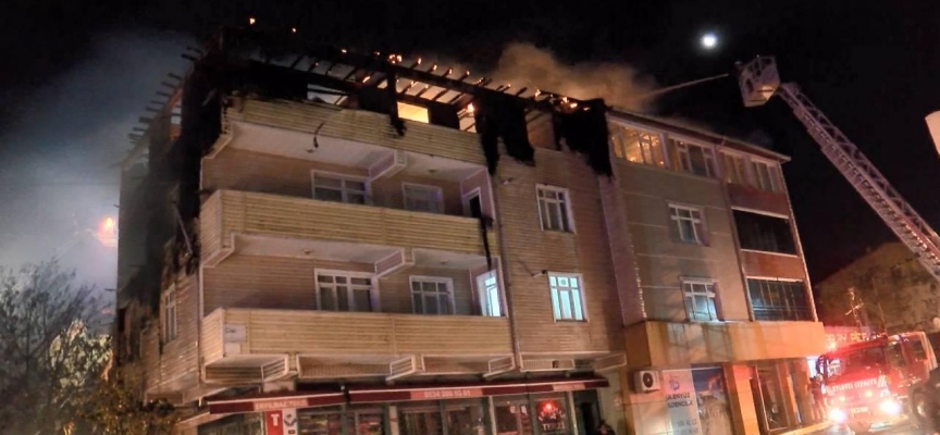 Yangın, rüzgarın da etkisiyle 3 binanın çatı katlarını etkisi altına aldı.