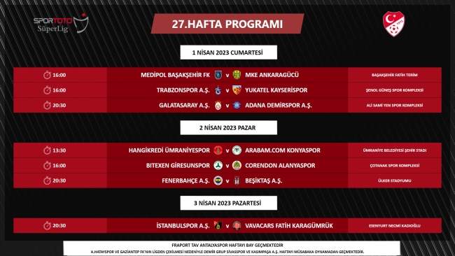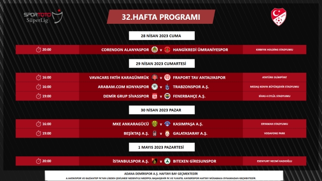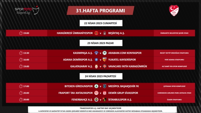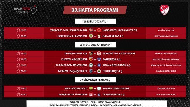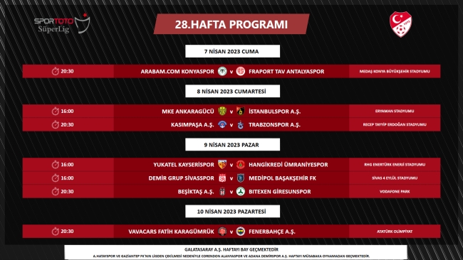 TFF'den yapılan açıklamaya göre; Fenerbahçe-Beşiktaş maçı 2 Nisan, Trabzonspor-Beşiktaş maçı 16 Nisan, Beşiktaş-Galatasaray maçı ise 30 Nisan'da oynanacak.