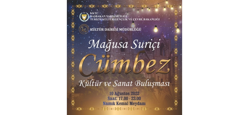 Başbakan Yardımcılığı, Turizm, Kültür, Gençlik ve Çevre Bakanlığı’na bağlı Kültür Dairesi ve Gazimağusa Belediyesi ile işbirliğinde, Mağusa Surlariçi’nde, çarşamba günü, “Cümbez Kültür Sanat Buluşması” adıyla etkinlik düzenleniyor.