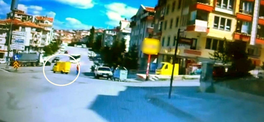 Evlere servis için kullanılan elektrikli araç, marketin önünde park halindeyken freninin boşalması sonucu hareketlendi. Araç, sürücüsüz olarak yokuş aşağı ilerlemeye başladı. Durumu fark eden market çalışanları da aracın peşinden koştu.