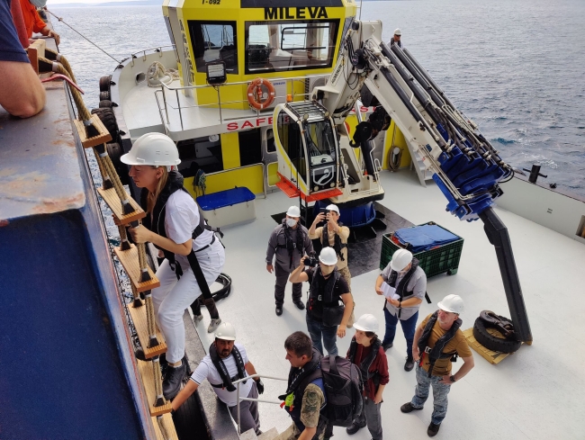 Saat 10.40'da gemiye ulaşan heyet, anlaşma kapsamında mutabık kalınan usul ve esaslar doğrultusunda söz konusu ticari gemide incelemelerde bulundu.
