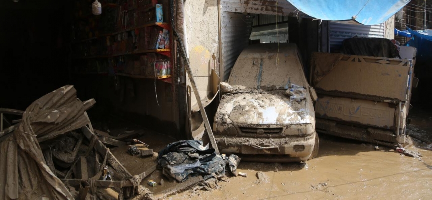 İran’ın başkenti Tahran’ın kuzeybatısında yer alan İmamzade Davud köyünde gece yağan şiddetli yağmurla oluşan sel nedeniyle köy merkezindeki türbe, iş yerleri, evler ve araçlar çamurla kaplandı. Selin verdiği zararın boyutu gündüz daha net görüldü.