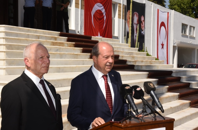 Tatar, 1968’lerden beri bir anlaşma için tüm gayretin gösterildiğini ancak karşı tarafta benzer bir niyet göremediklerini kaydederek “Yeni süreç mutlak surette Kıbrıs Türk halkının egemen eşitliğinin ve eşit uluslararası statüsünün teyidiyle başlayabilir” dedi.