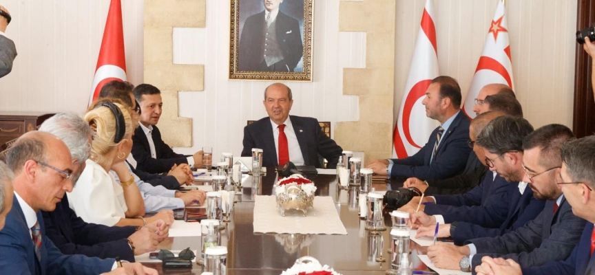 Cumhurbaşkanı Ersin Tatar, Türkiye Cumhuriyeti’nden gelen gazeteci heyetini kabulünde Kıbrıs Türk halkının Ada’daki varlık mücadelesinde Türkiye Cumhuriyeti’nin desteğinin önemini vurguladı.