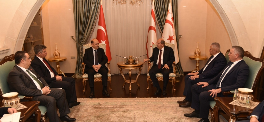 Cumhurbaşkanı Ersin Tatar, Türkiye Cumhuriyeti Çalışma ve Sosyal Güvenlik Bakanı Vedat Bilgin ve beraberindeki heyeti kabul etti.