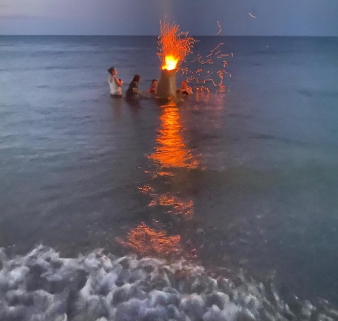 Sanatçı Serdar Aslan da kısa bir konuşma yaptı. Serdar Aslan, denizde yakılan fırınlarda su ile ateşi buluşturduklarını bununla da daha yaşanabilir bir dünya ve ekolojik sisteme dikkat çekmeyi amaçladıklarını kaydetti.