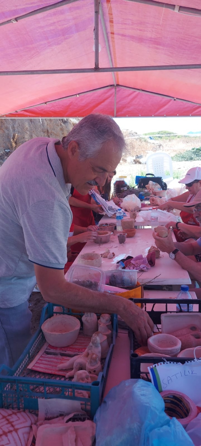 Sanatçı Serdar Aslan’ın yer aldığı etkinlikte ilkel dönemlerde olduğu gibi topraktan kaplar yapılarak deniz içerisine kurulan kağıt fırınlarda pişirildi.