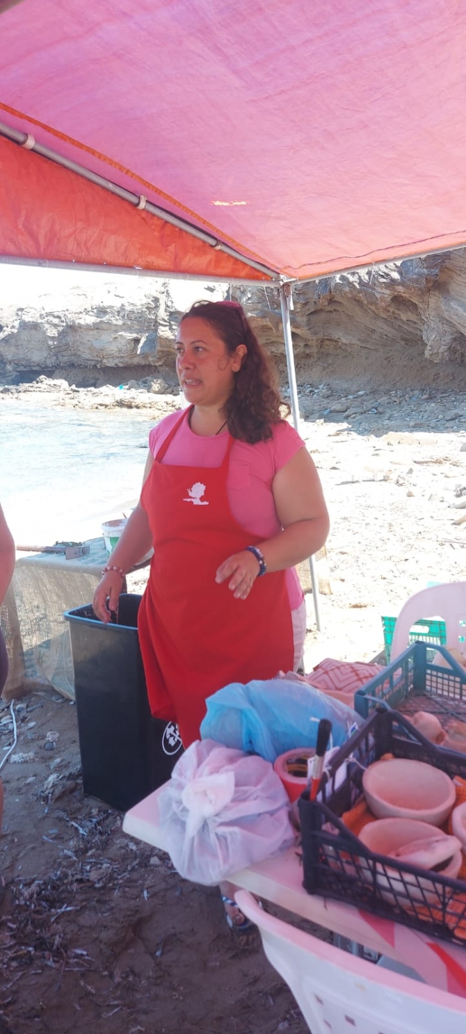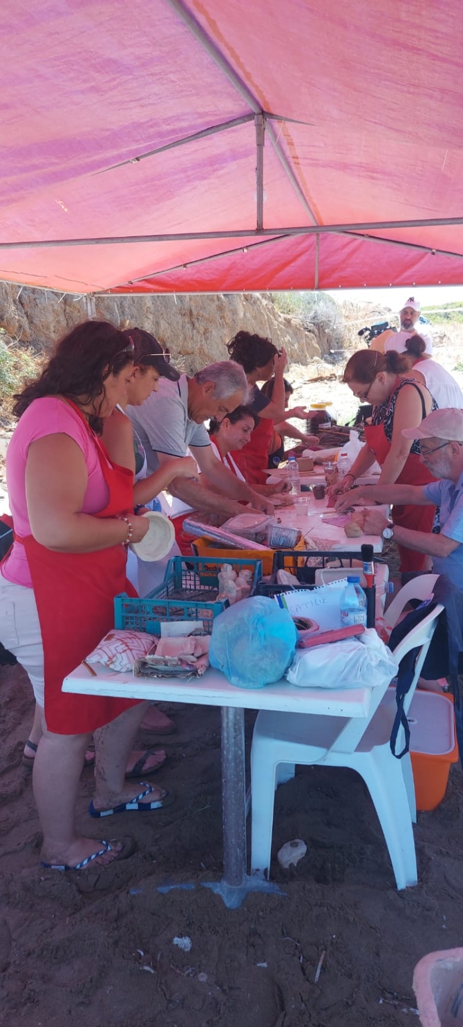 Etkinlik kapsamında yapılan toprak kaplar denizde yakılan kağıttan fırınlarda pişirildi.