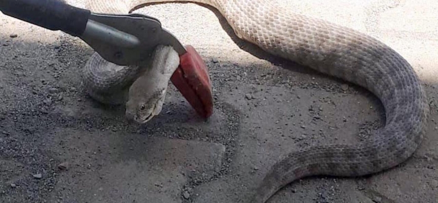 Büyük korku ve paniğe neden olan yılan, itfaiye ekipleri tarafından tekrar doğaya bırakıldı.