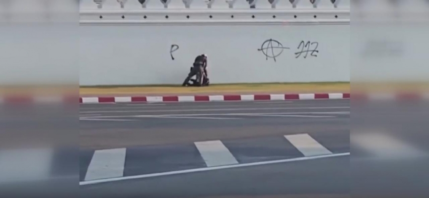 Tayland'da monarşi karşıtı bir kişi Büyük Saray’a bağlı olan ve Tayland Kraliyet Tapınağı olarak bilinen Wat Phra Kaew Tapınağı’nın (Zümrüt Tapınağı) duvarına sprey boya ile monarşi karşıtı semboller çizdi.