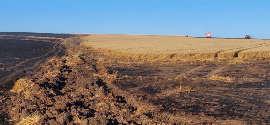 Yangında bir kısmı biçilmemiş yaklaşık bin dönüm buğday tarlası zarar gördü.