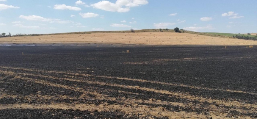 Ahievren ve Hereke mahalleleri arasındaki hasadı beklenen buğday tarlasında henüz bilinmeyen nedenle yangın çıktı.