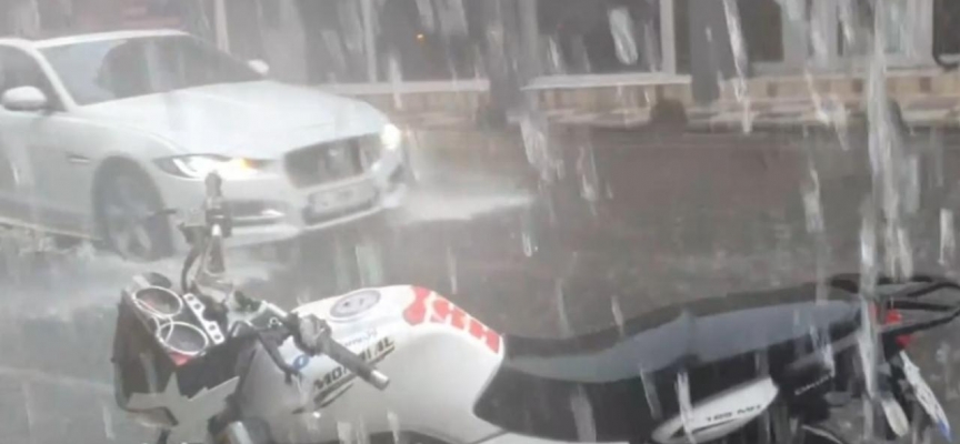 Yaklaşık 5 dakika süren dolu yağışı, yerine sağanağa bıraktı.