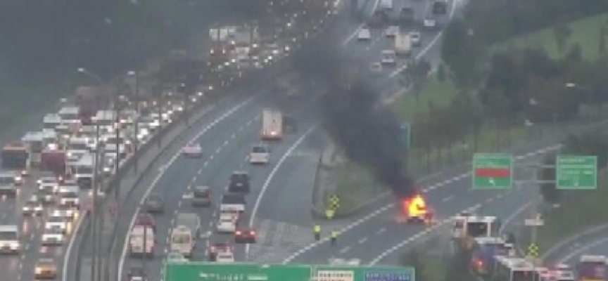 TEM Otoyolunda Edirne istikametine seyreden, sürücülerinin ismi öğrenilemeyen otomobil ile servis minibüsü, Kemerburgaz sapağında çarpıştı.