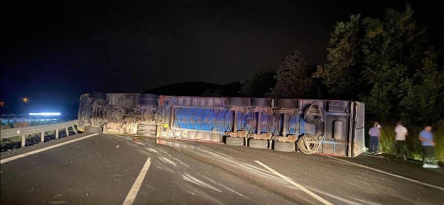 Kazada tır sürücüsü hafif yaralanırken, polis ekiplerinin 2 saatlik yoğun çalışması sonrasında otoyolun 2 şeridi trafiğe açıldı.