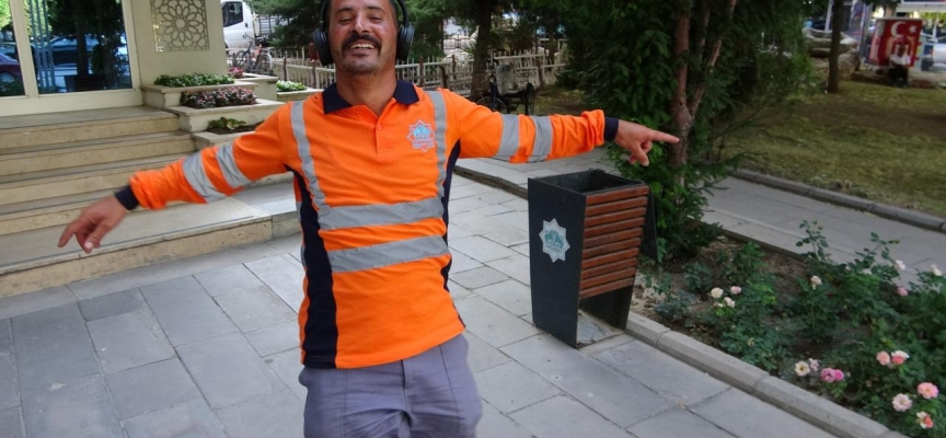 Aksaray Belediyesinde temizlik görevlisi olarak çalışan Hamit Karakaya davranışlarıyla herkesi neşelendiriyor.