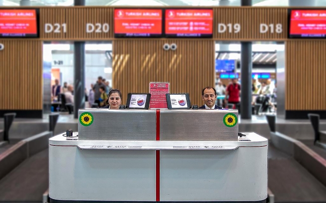Dünyada görünmeyen engellerin sembolü olan ayçiçeği yaka kartları, İstanbul Havalimanı İç ve Dış hatlarda bulunan Özel Hizmet kontuarlarından ücretsiz temin edilebiliyor.