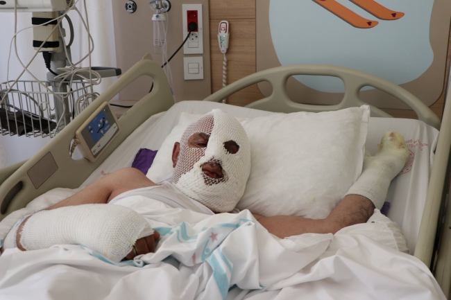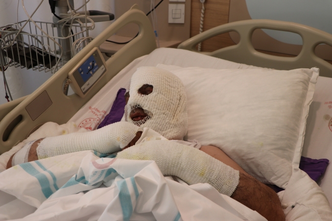 Yanık Tedavi Merkezi doktorlarından Onur Ceylan da kimyasal maddeye maruz kalma sonucu vücudunun çeşitli yerlerinden 2. ve 3. derece derin yanıklar oluşan İbrahim Tilaver'i yakından takip ettiklerini belirterek, medikal ve pansuman tedavisinin sürdüğünü aktardı.