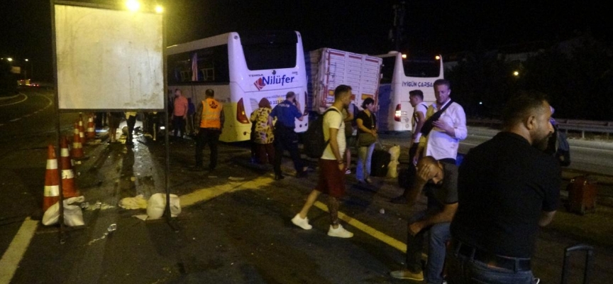 Çarpmanın etkisiyle kamyon ve otobüs, yol kenarındaki bariyeri devirerek yolun Ankara istikameti tarafında durabildi.