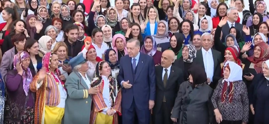 Etkinliğe katılan kadınlar, cep telefonlarıyla Erdoğan ile tek tek fotoğraf çektirdi.