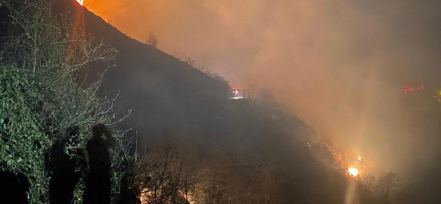 Of ilçesinde ormanlık alanda akşam saatlerinde başlayan yangın, rüzgarın da etkisiyle kısa sürede büyüdü.