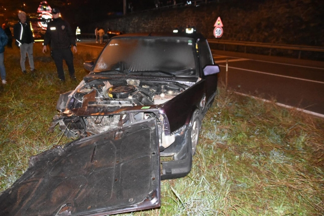 Karadeniz Sahil Yolu'nun Rize-Trabzon istikametinde sürücüsünün kimliği belirlenemeyen bir otomobil, Yomra ilçe merkezi yakınlarında karşı şeritteki araçla çarpıştı.