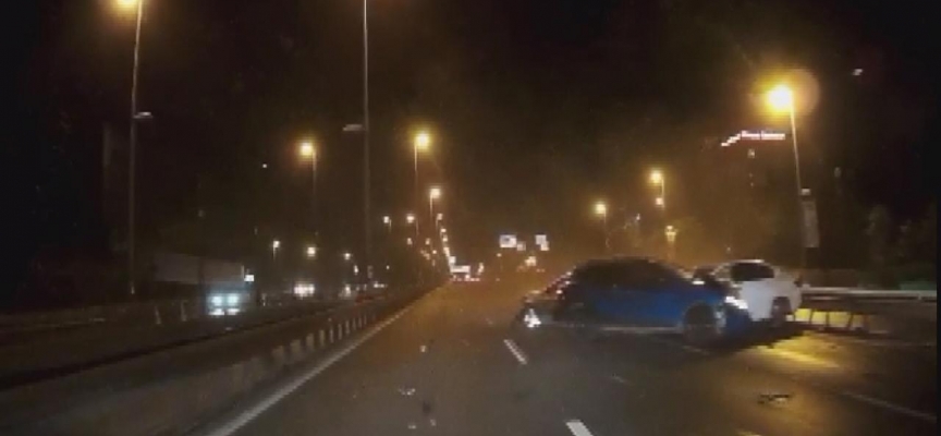 Kaza anı kameraya saniye saniye yansıdı. Görüntülerde, otomobilin yolda makas atarak ilerlediği ve kontrolden çıkmasıyla araçların birbirine girdiği anlar yer alıyor.