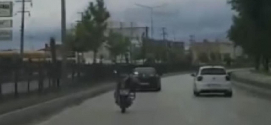 Kendi canını hiçe sayan genci gören başka bir sürücü bu anları cep telefon kamerası ile kayıt altına aldı.