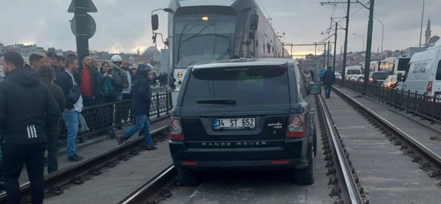 Seyir halindeki cip sürücüsü, Karaköy'den Eminönü'ne geçişte araçlara kapalı T1 Kabataş-Bağcılar Tramvay Hattı yoluna girdi. Bir süre ilerleyen cip, daha sonra durarak yolda kaldı.