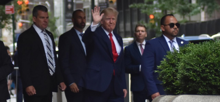 Sahibi olduğu Trump Tower'dan çıkarken kendisini bekleyen gazetecilere el sallayan eski Başkan, beraberindeki gizli servis ve kendi özel korumalarından oluşan geniş güvenlik ekibi ile Başsavcılığa hareket etti.